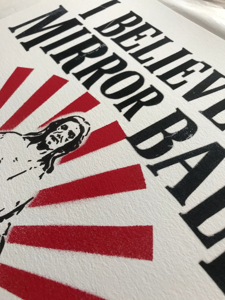A2 Giclee print on thick Hahnemuehle Art Paper. This piece is a collaboration between myself and Lee Ainsworth. This same image is also available as an A3 screen print AND 3D wall piece with actual authentic plastic Jesus, born in China.