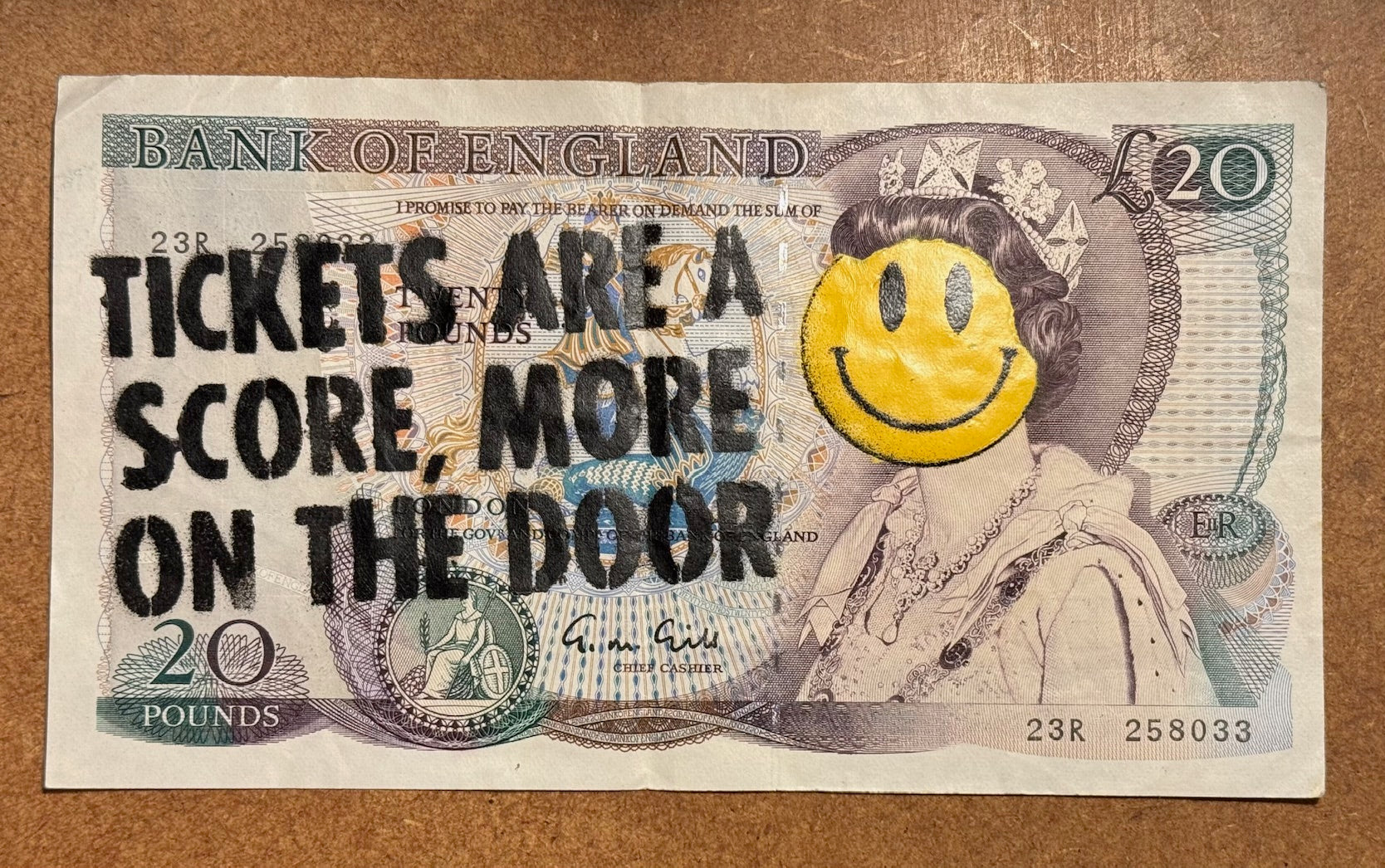 REAL MONEY VERSION STENCIL ON ACTUAL BANK NOTE IN CIRCULATION DURING THE 90'S TICKETS WERE A SCORE