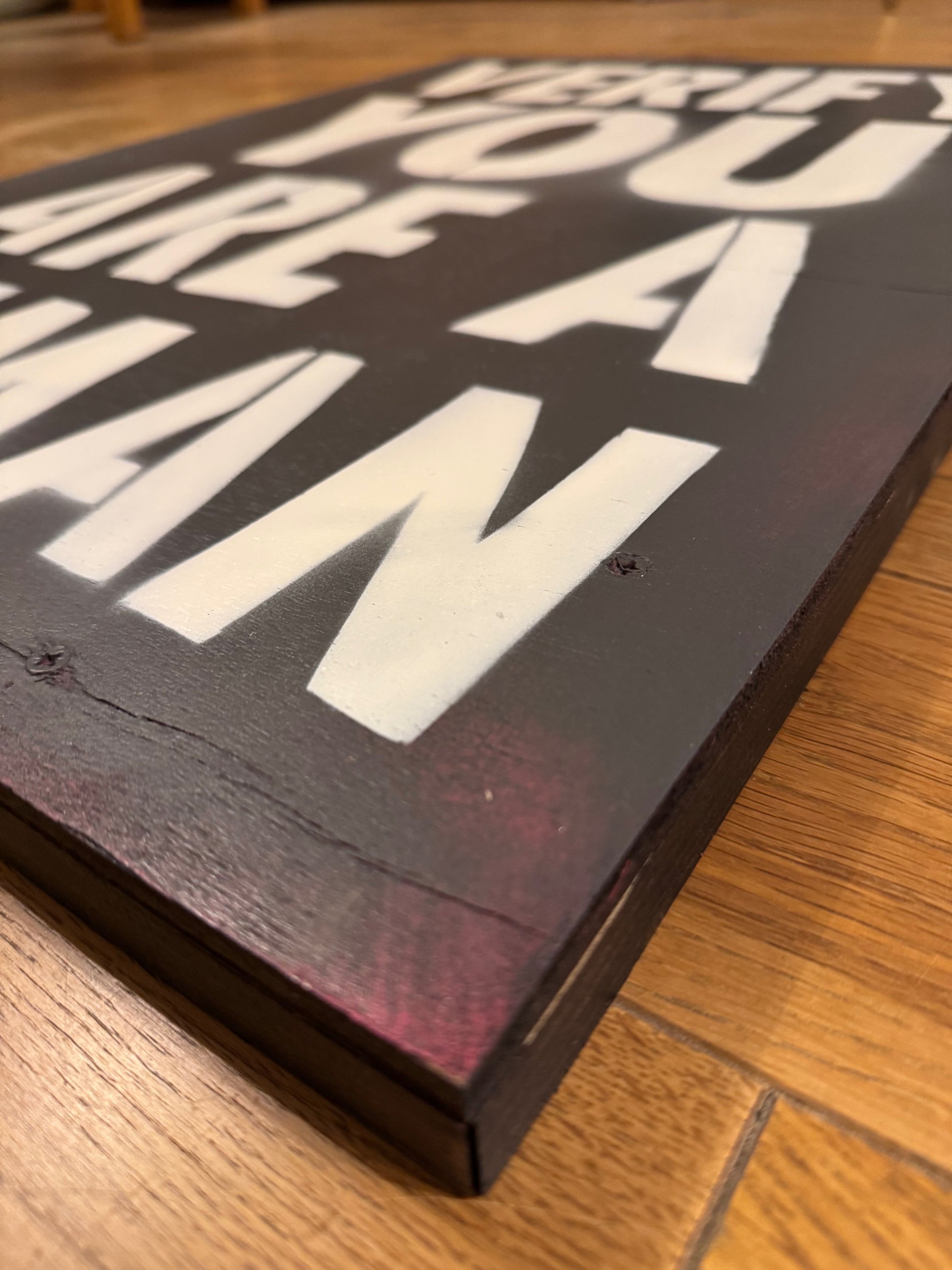 VERIFY YOU ARE A HUMAN STENCIL ON WOOD