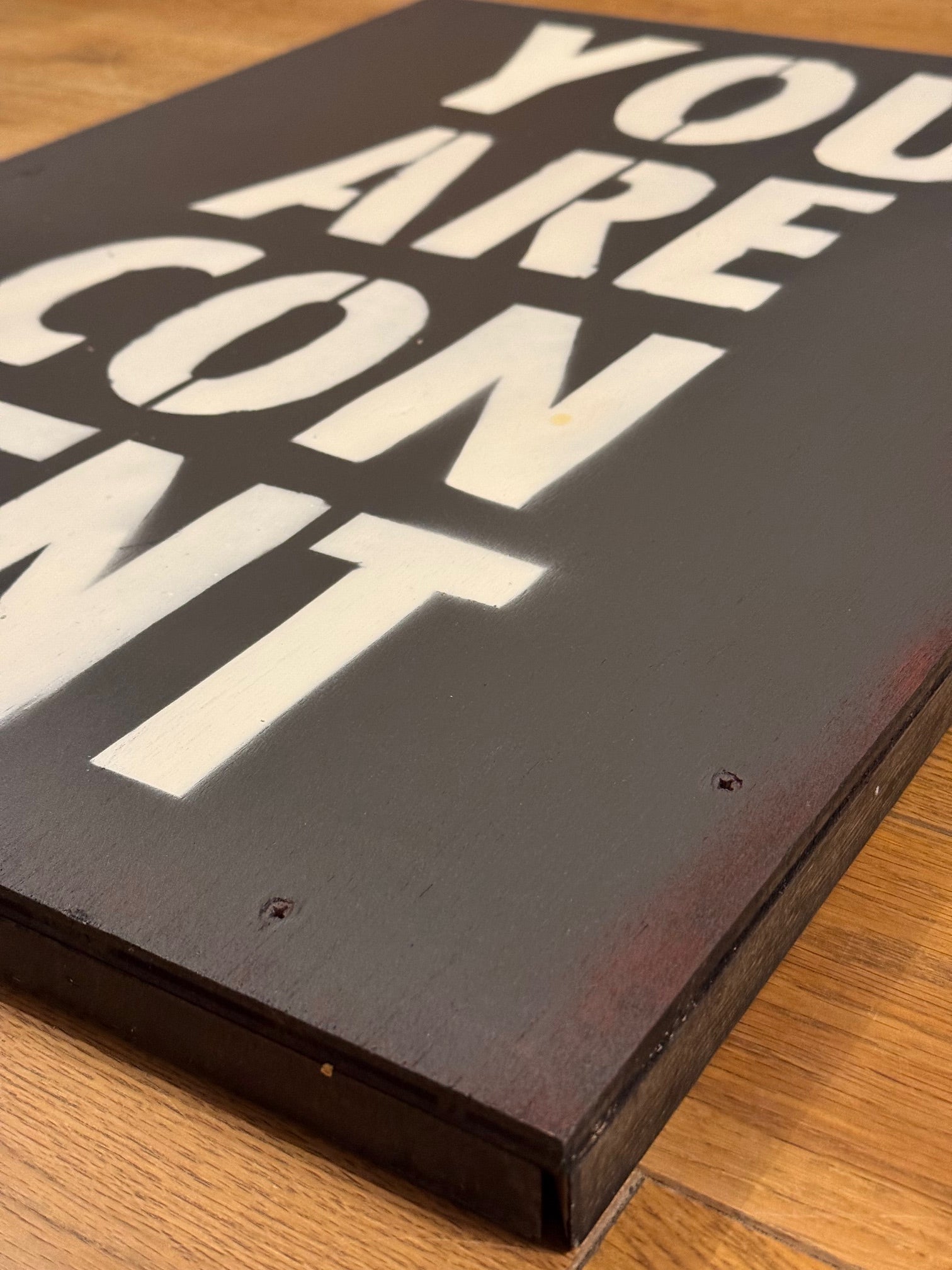 Originally made for the dystopian environment of Shangrila Glastonbury Spray painted on wood B2 size approx 50cm x 70cm